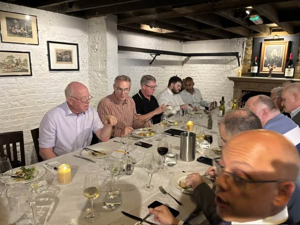 On a hot July evening a number of new members to the AMD District of London gathered at The Boot & Flogger Public House near Borough market for the District's Annual New Members' Dinner. The evening was hosted by the District Grand Prefect, R. W. Bro. Colin Woodcock along with members of his executive, the Deputy District Grand Prefect V. W. Bro Scott Cargill, District Grand Senior Warden W. Bro. Peter Warner, District Grand Secretary W. Bro. Richard Criddle and District Grand Sword Bearer W. Bro. Terry Worrall.